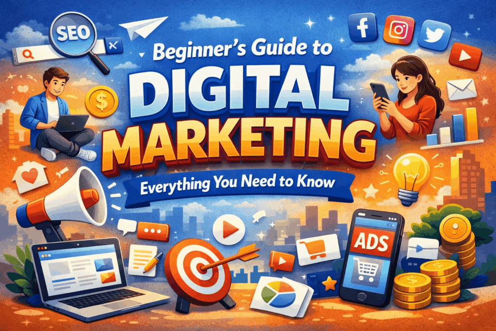 Digital marketing is the practice of promoting products, services, or brands using online platforms and digital technologies. In today’s digital era, people spend most of their time on the internet, making digital marketing one of the most effective ways to reach customers. For beginners, digital marketing may seem complicated, but it is built on simple concepts that anyone can learn with time and practice. Whether you want to grow a business, build a personal brand, or start a career, digital marketing offers endless opportunities.